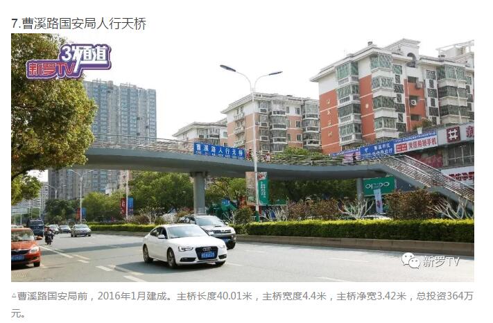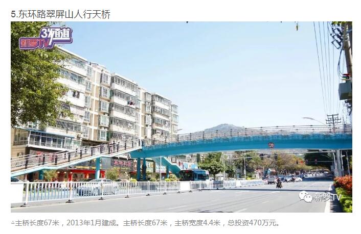 年來,市委、市政府加大市政基礎設施投入,大力推進人行天橋建設。截止2017年底中心城市共興建20余座人行天橋。